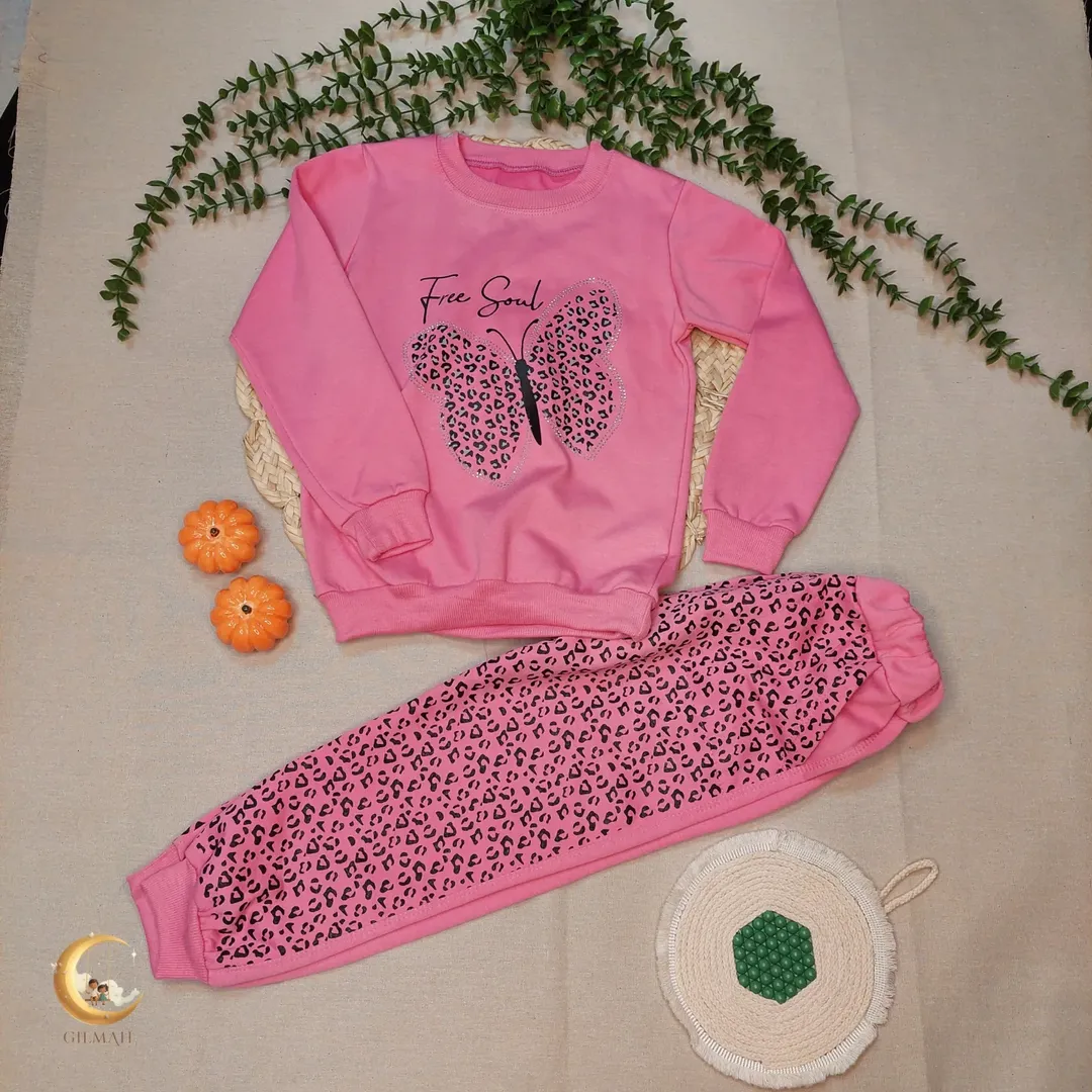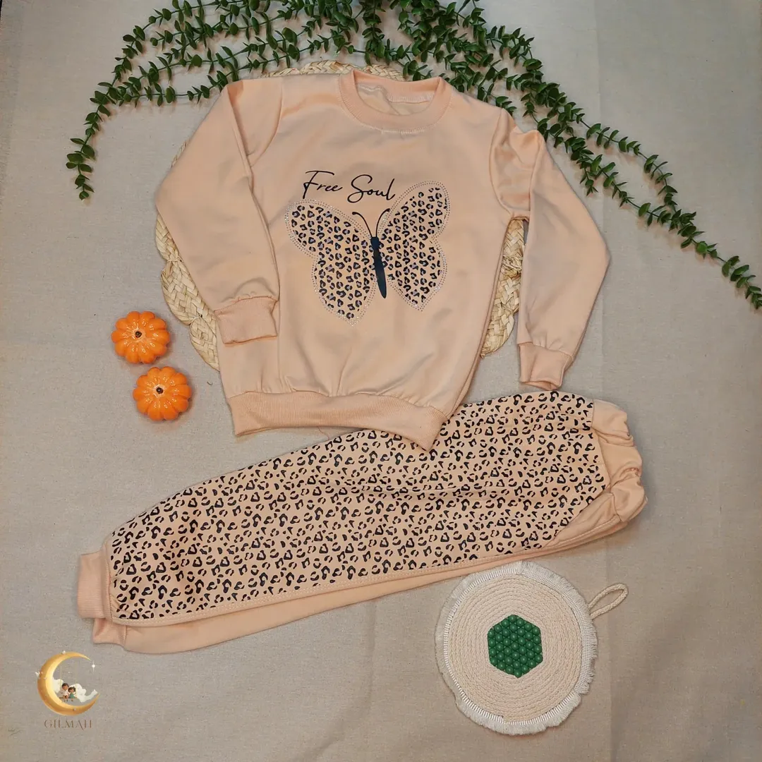 ست بلواز شلوار دخترانه تو کرک کرک داخل خارجی در رنگبندی کرم، صورتی، صابونی و سرخابی.