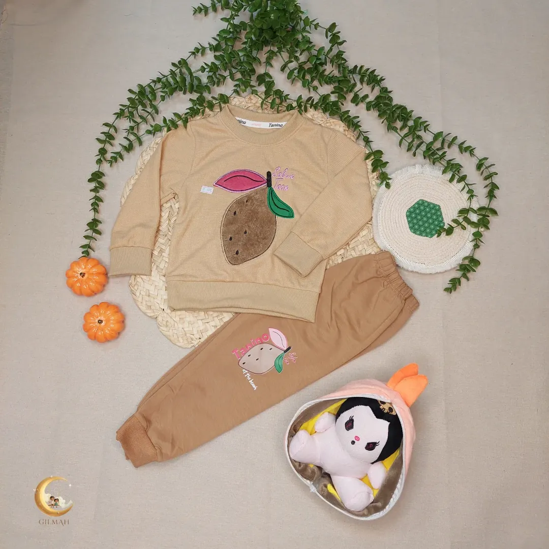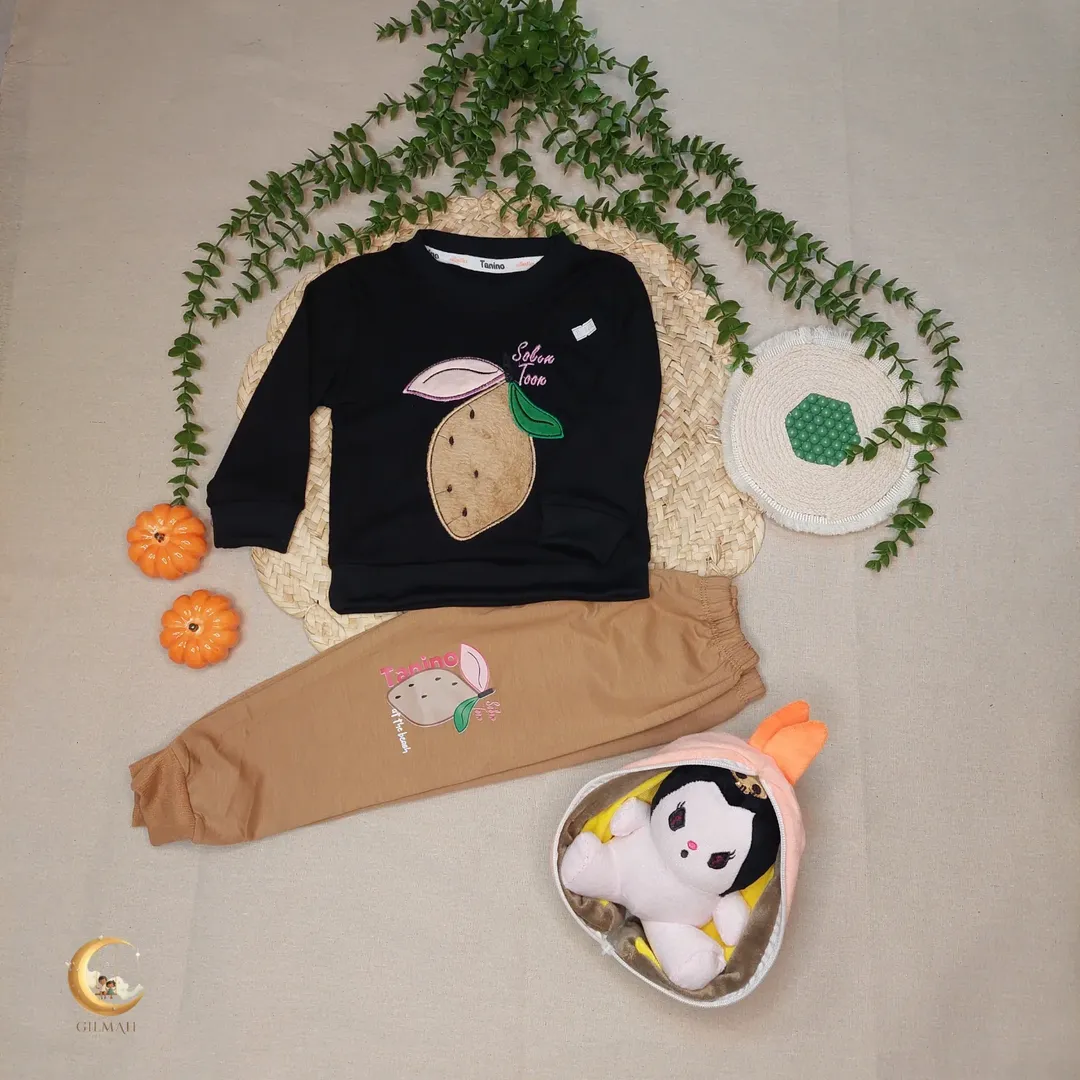 بلوز دورس دخترانه با طراحی بیسکوئیتی و شلوار دورس دونخ مناسب برای سایزهای مختلف.