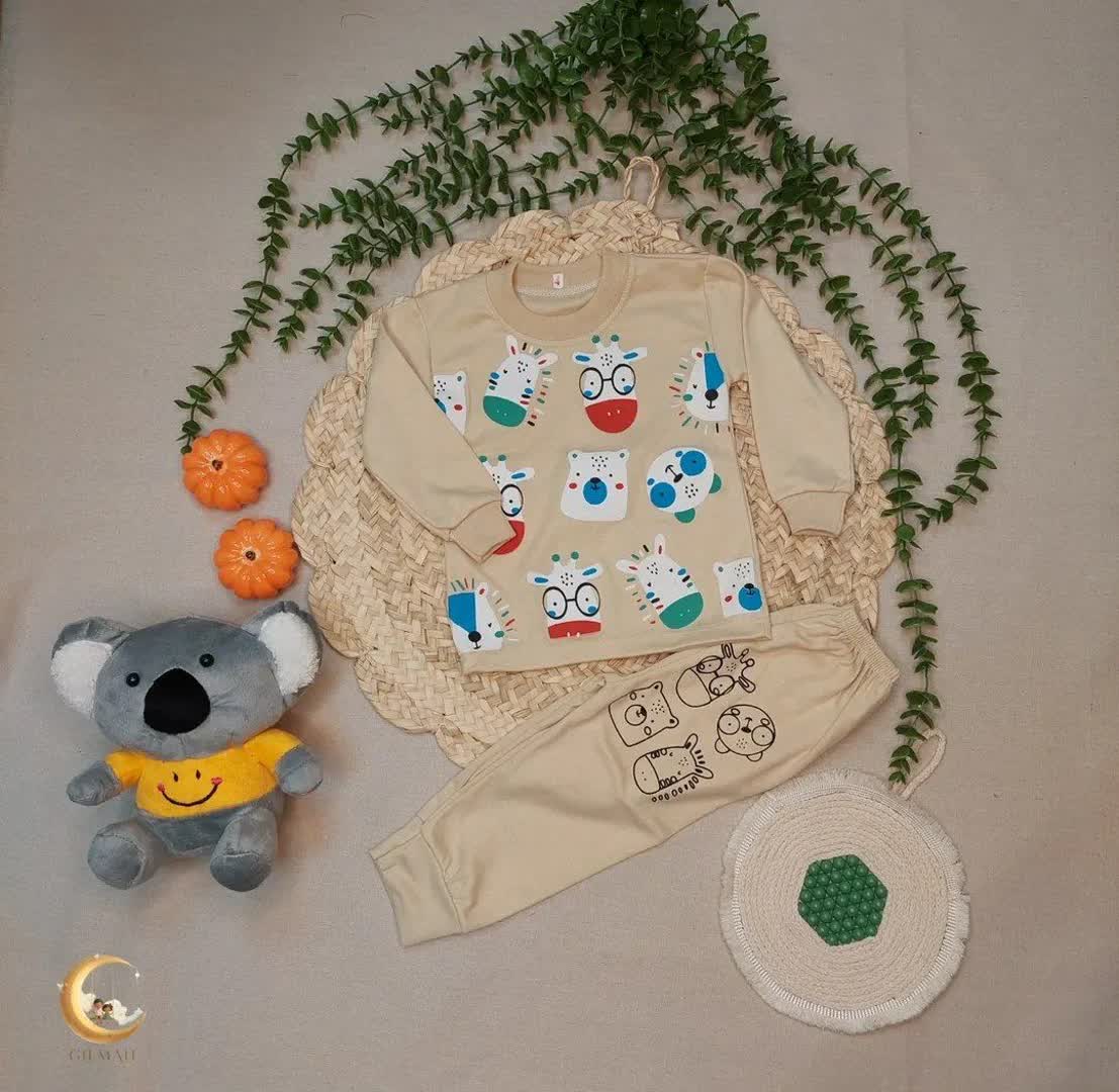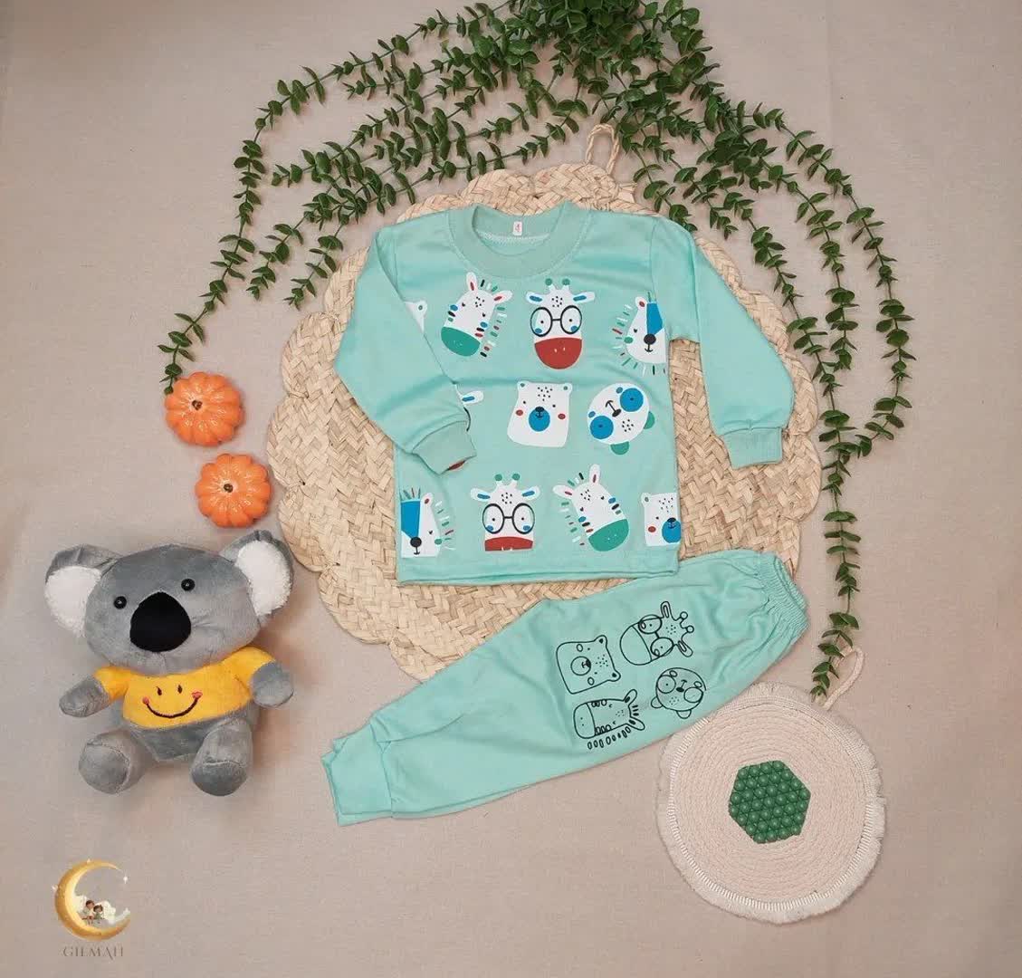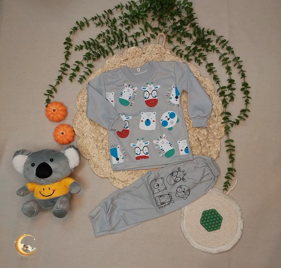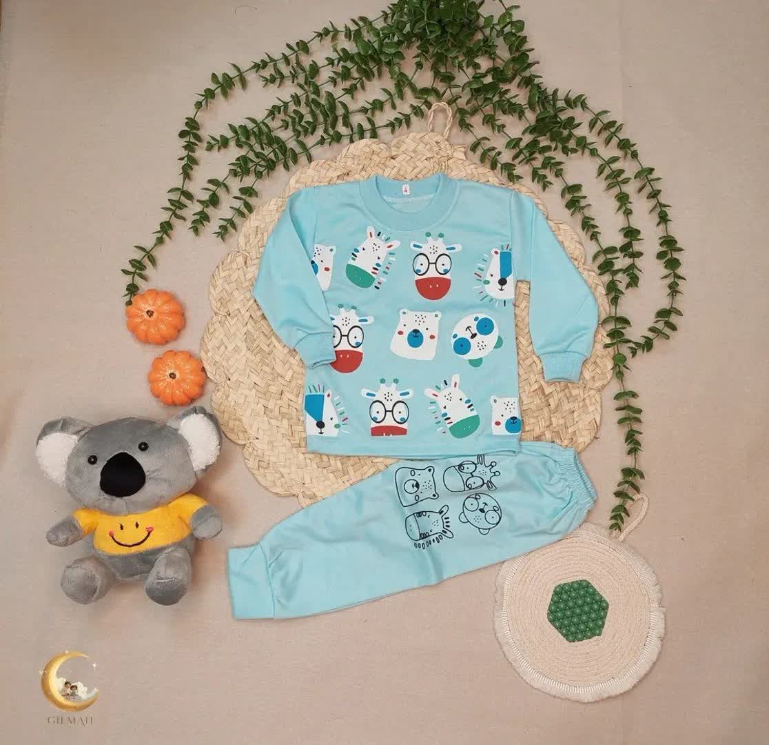 این ست شامل بلوز و شلوار از جنس نخ پنبه است و به جثه کودک بستگی دارد. اندازه دقیق محصول در صورت نیاز قابل ارائه است.