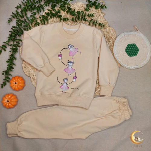 بلوز شلوار دخترانه بلوز بیسکوئیتی و شلوار دورس