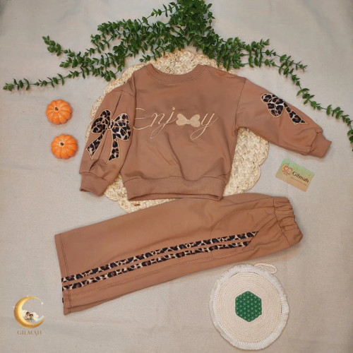 بلوز شلوار دخترانه پاپیون پلنگی