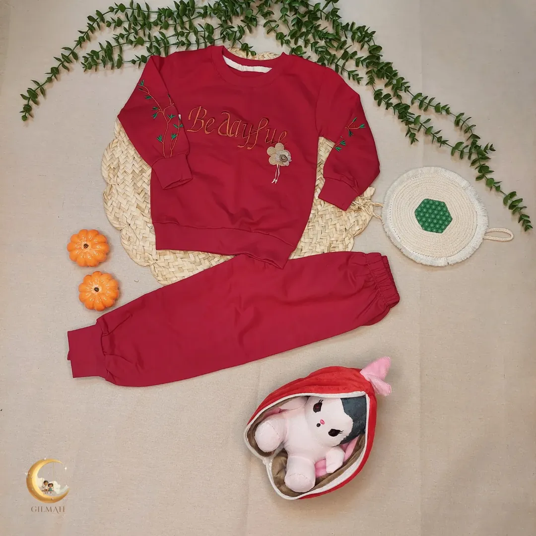 ست بلوز شلوار دخترانه دو رنگ قرمز و خردلی سایز ۳۵/۴۰/۴۵