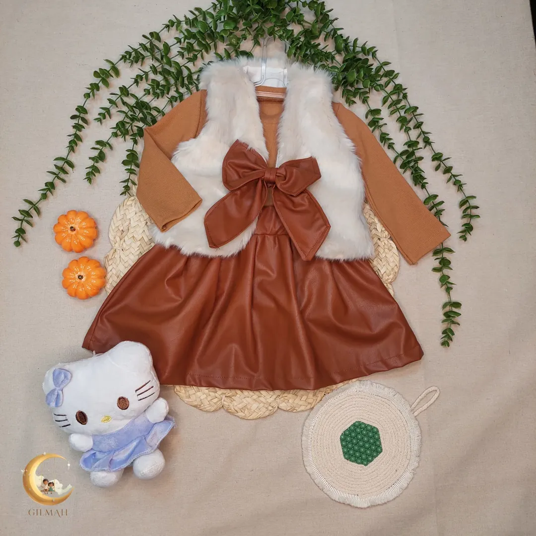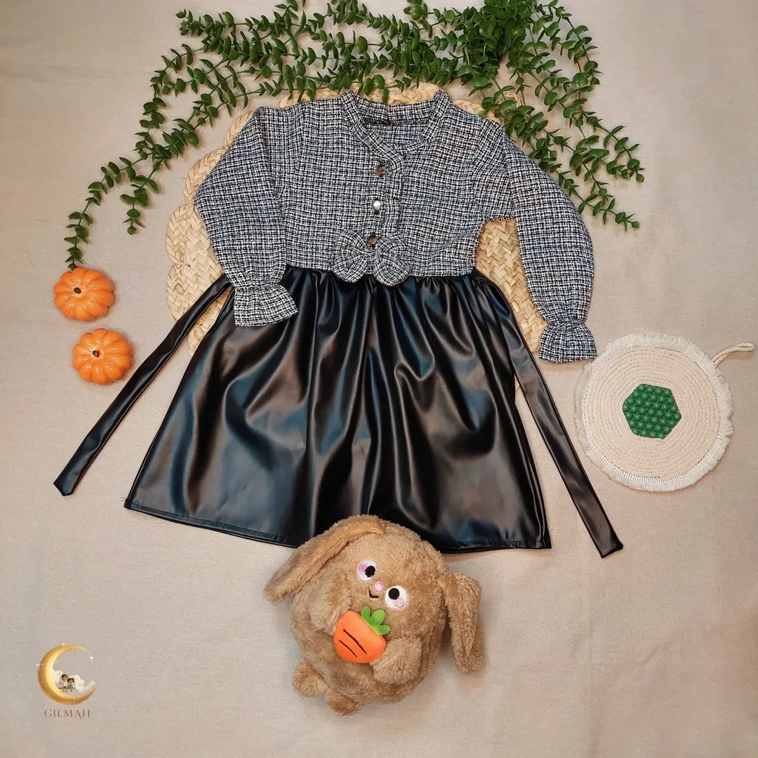 ناموجودپیراهن دخترانه ترکیب پارچه شنل ریما و چرم